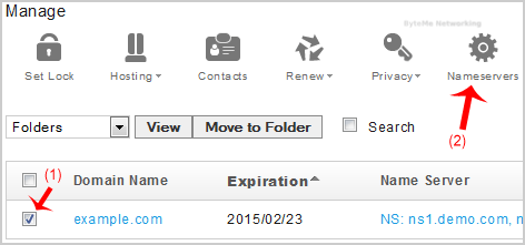 4. Check the box next to your domain name(s) and click on the "Name servers" icon.