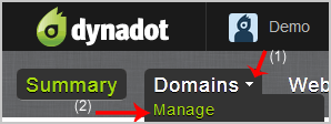 3. After a successful login, select "Manage" from the "Domains" drop-down menu.