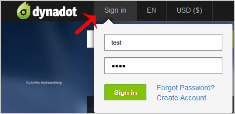 1. Open the DynaDot website and click on "Login". It will show you a login form.