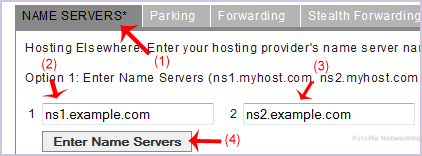 6. To add new name servers, look at Option 1. Enter your two name servers in the provided text boxes, and then click the "Enter Name Servers" button to save your changes.