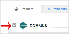 3. After a successful login, click on the + (plus) icon next to Domains in the "Products" tab.