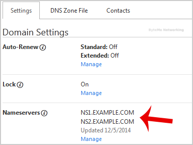 5. In Settings tab, Click on the "Manage" link under "Nameservers".
