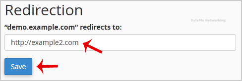 5. Under the "Subdomain Redirection" option you should enter the link to which you want to redirect the subdomain in the available text box.