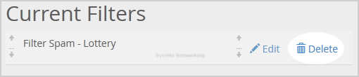 2. Under "Current Filters" you can see all of your existing filters. Click on "Delete" next to the appropriate filter name.