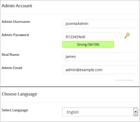 • Admin Username: Your new Joomla username (for security reason do not use the "Administrator" or the "Admin" username.)
