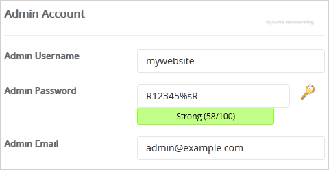 9. Under the "Admin Account" field enter the following information: