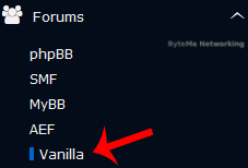 5. On the left side of your screen you should locate the "Forums" category. Click on it and then click on the "Vanilla" link that will appear.