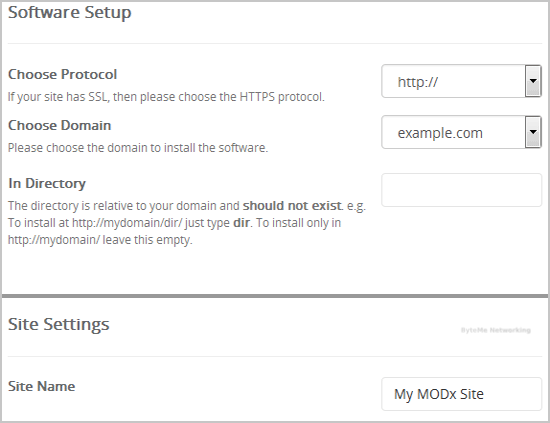 • Site Name: Enter the name of your website, such as "MODX".