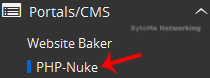 4. On the left side of your screen you should locate the "Portal/CMS" category. Click on it and then click on the "PHP-Nuke" link that will appear.