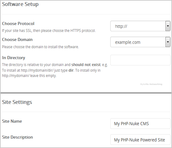 • Site Name: Enter the name of your website, such as "PHP-Nuke".