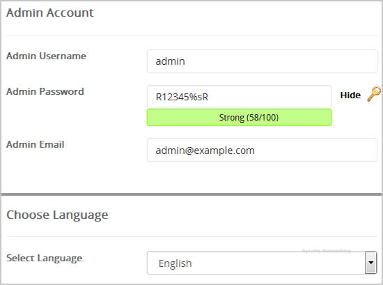 8. Under the "Admin Account" field enter the following information: