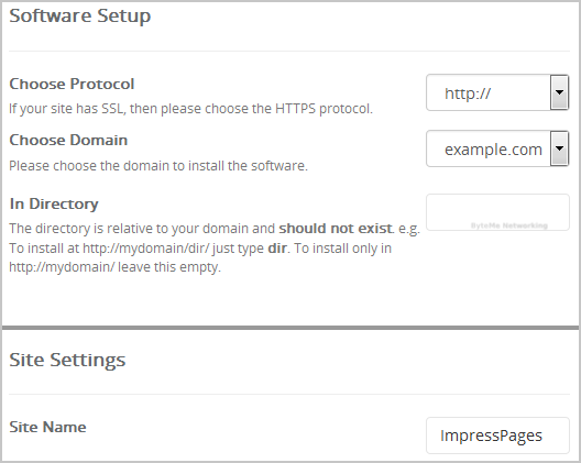 • Site Name: Enter the name of your website, such as "ImpressPages".