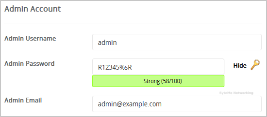 • Admin Username: The default username is "Admin" and the edit option is disabled.