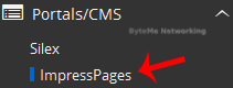 4. On the left side of your screen you should locate the "Portal/CMS" category. Click on it and then click on the "ImpressPages" link that will appear.