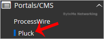 4. On the left side of your screen you should locate the "Portal/CMS" category. Click on it and then click on the "Pluck" link that will appear.