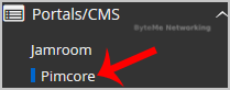 4. On the left side of your screen you should locate the "Portal/CMS" category. Click on it and then click on the "Pimcore" link that will appear.