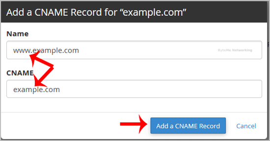 Name: Enter the name you wish to add, such as "www" and cPanel will automatically add a domain name like www.example.com.