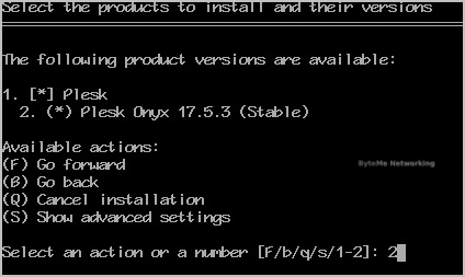 Step 2:  Now you can select a version. For Plesk, type 1 and for Plesk Onyx, type 2. Then press enter. Type "F" and press enter again to go to the next option.