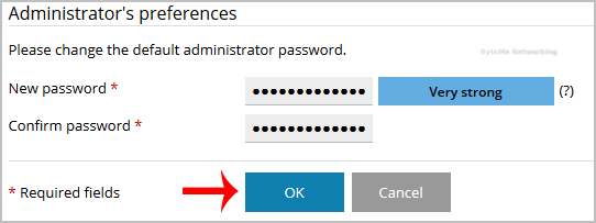 Step 6:  Scroll down to the end of page, generate a new password or enter it manually, then press "OK". Make sure that you stored this password in a safe place. In the next step, enter your administrative information such as an email address, a contact name and then press "OK".