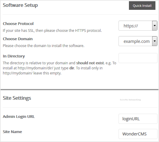 - Site Name: Enter the name of your website, such as "WonderCMS".