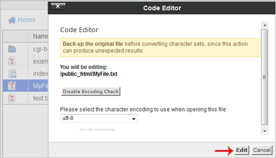 6. If the small "Code Editor" window is open, click on the "Edit" button, which will open a new window with options you can edit.
